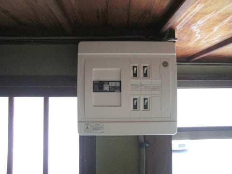 昔の住宅は、回路も少なく容量も十分にありませんでした。新しく配電盤を取り付け、エアコン、電子レンジなど専用回路を設けました。これで色んなものを同時使用しても大丈夫な容量になりました。外部に新しく容量の大きいブレーカーも取り付けしています。