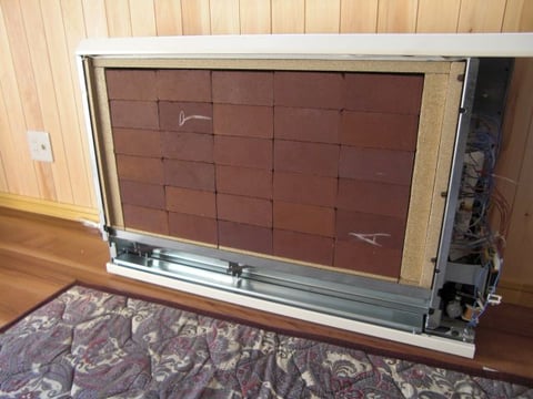 ヒーターを挟んで、耐火レンガを組み込みます。大きさにより6畳から20畳まで対応できます。